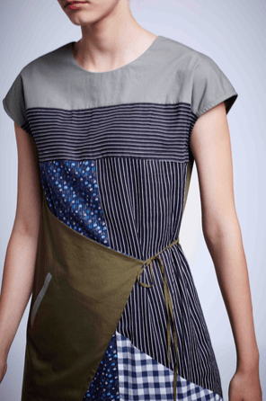 The collection brings together kilos of discarded industrial fabrics, patched and embroidered over to create a short collection for our first drop of Autumn Winter. Prominent colors in the collection include Marsala, Navy blue, sap green, Charcoal and lighter under tones of pastel blue, steel grey and beige. The techniques used in this collection include patchwork, paneling and hand done embroidery. The busy under layer done in prints/patchwork/embroidery/weaving represent the current situation of urban chaos, super imposed by delicate florals of hope.