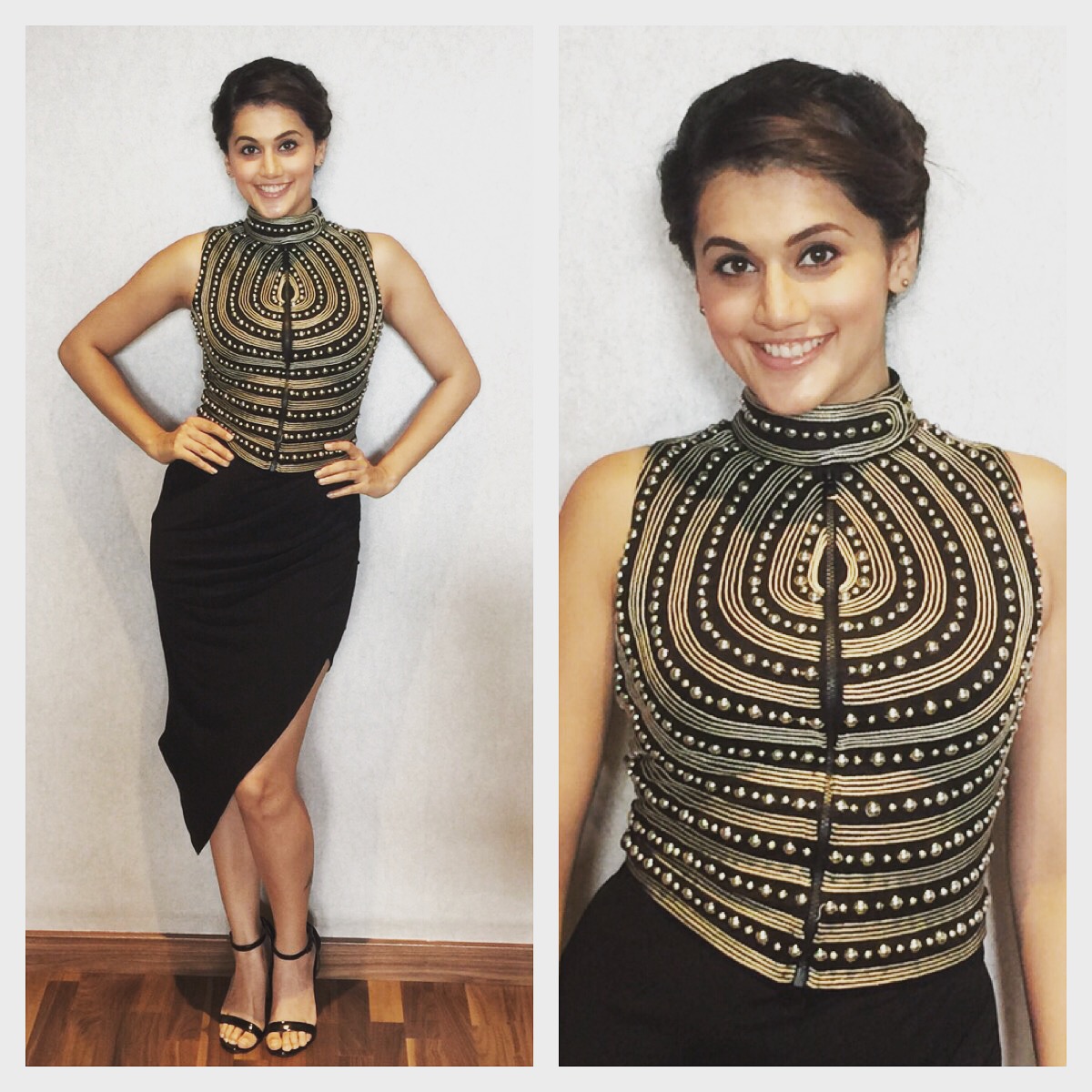04.24.15 Posted on April 25, 2015 Posted in UncategorizedLeave a comment Taapsee Pannu Outfit: VismayaCouture Event: Vai Raja Vai press conference