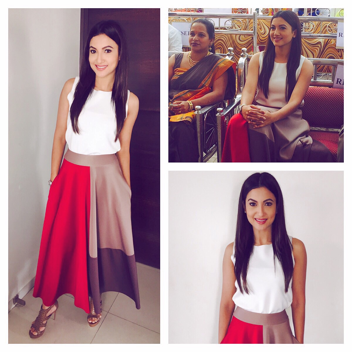 In pussy bow blouse by Dsquared2 (available at Fervour.in) and skirt by Urban Rust clothing.